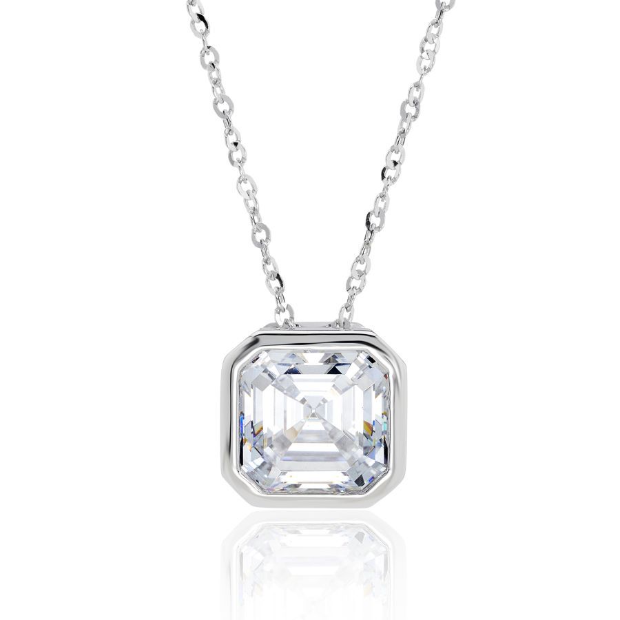 Mesmerising 8mm cushion cut cubic zirconia, bezel set in 9ct white gold on an 18" trace chain with an option to wear at 16".