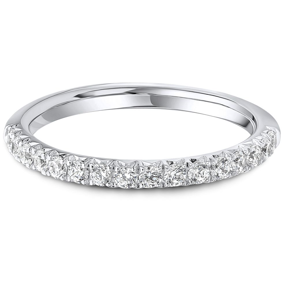Beautiful brilliant cut diamonds totalling 0.33ct. G colour, SI clarity, are pave set in this 2.1mm band with 50% diamond coverage.