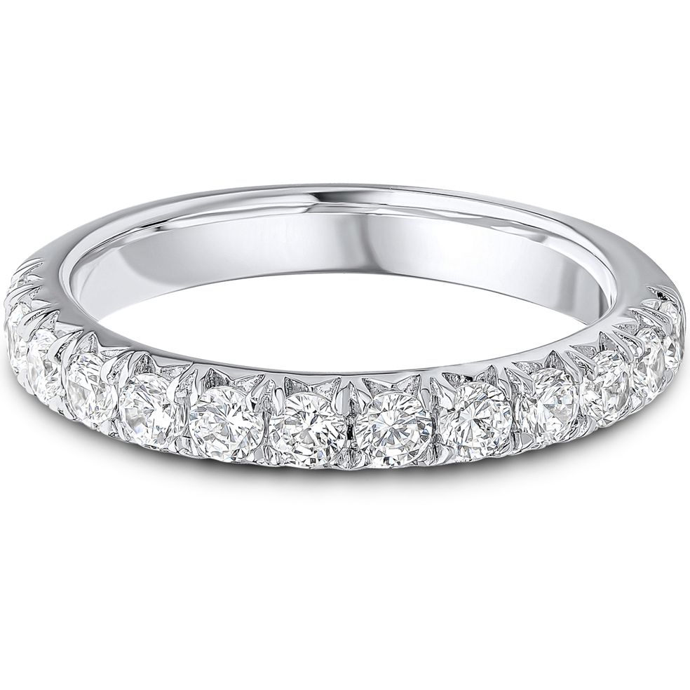 Nestled in a pave setting, these brilliant cut diamonds total 0.75ct., G colour, SI clarity, with a 50% coverage in a 2.9mm band width.