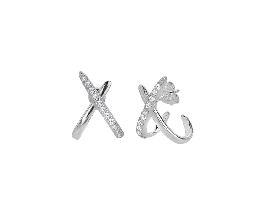 Silver stud earrings set with sparkling cubic zirconia, finished with stem and butterfly fittings