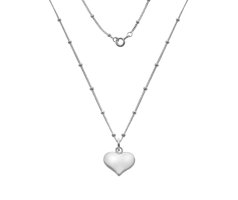 A bestseller! Pretty 'puffed' silver hollow heart pendant on a feature beaded chain