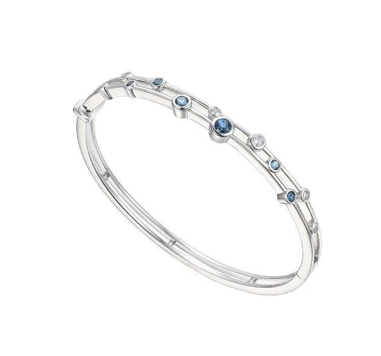 Sterling Silver, Blue Topaz and Cubic Zirconia Bubble Bangle