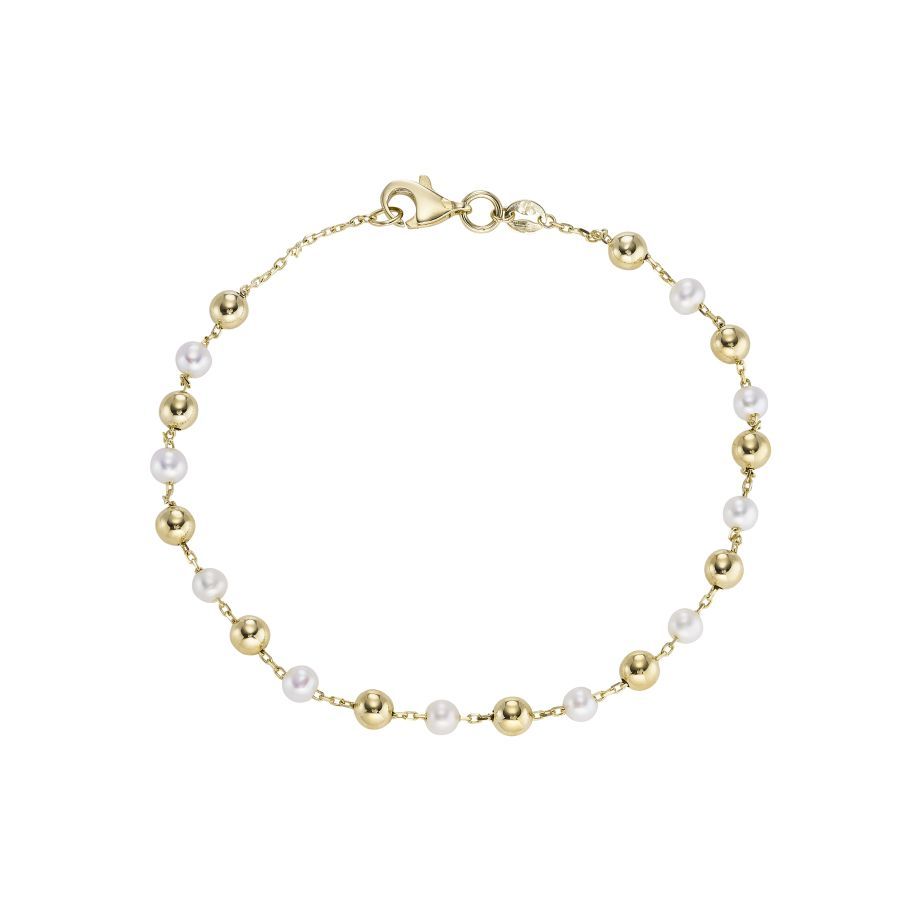 9ct Yellow Gold Ball & Pearl Bracelet