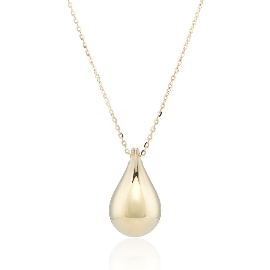 On trend domed teardrop pendant, overall height 19mm, on a diamond cut filed trace chain.