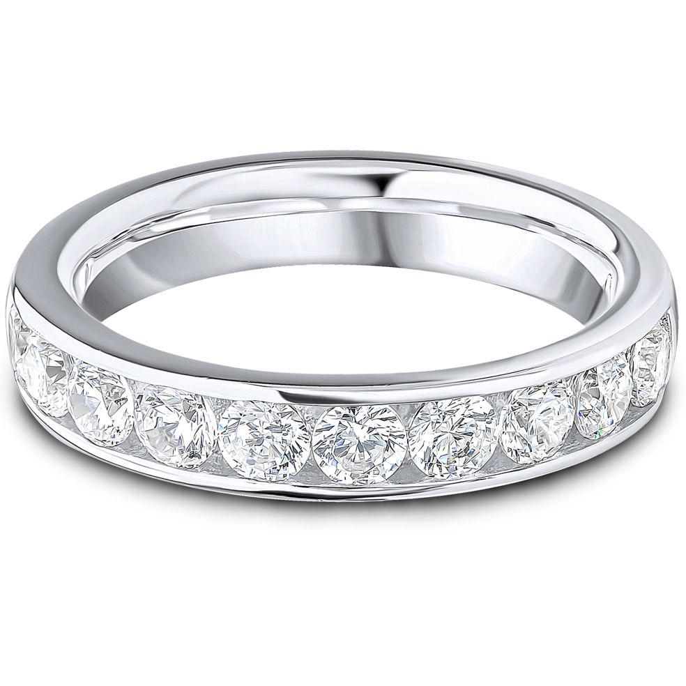 Sparkling brilliant cut diamonds, totalling 1.00ct., G colour, SI clarity, channel set into a 4mm platinum band.