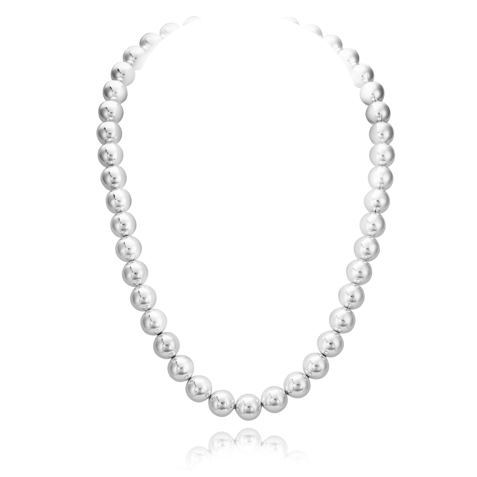 A simple and elegant design, each ball bead sits 12mm high. Overall length of necklet 17" with a lobster catch fastening.